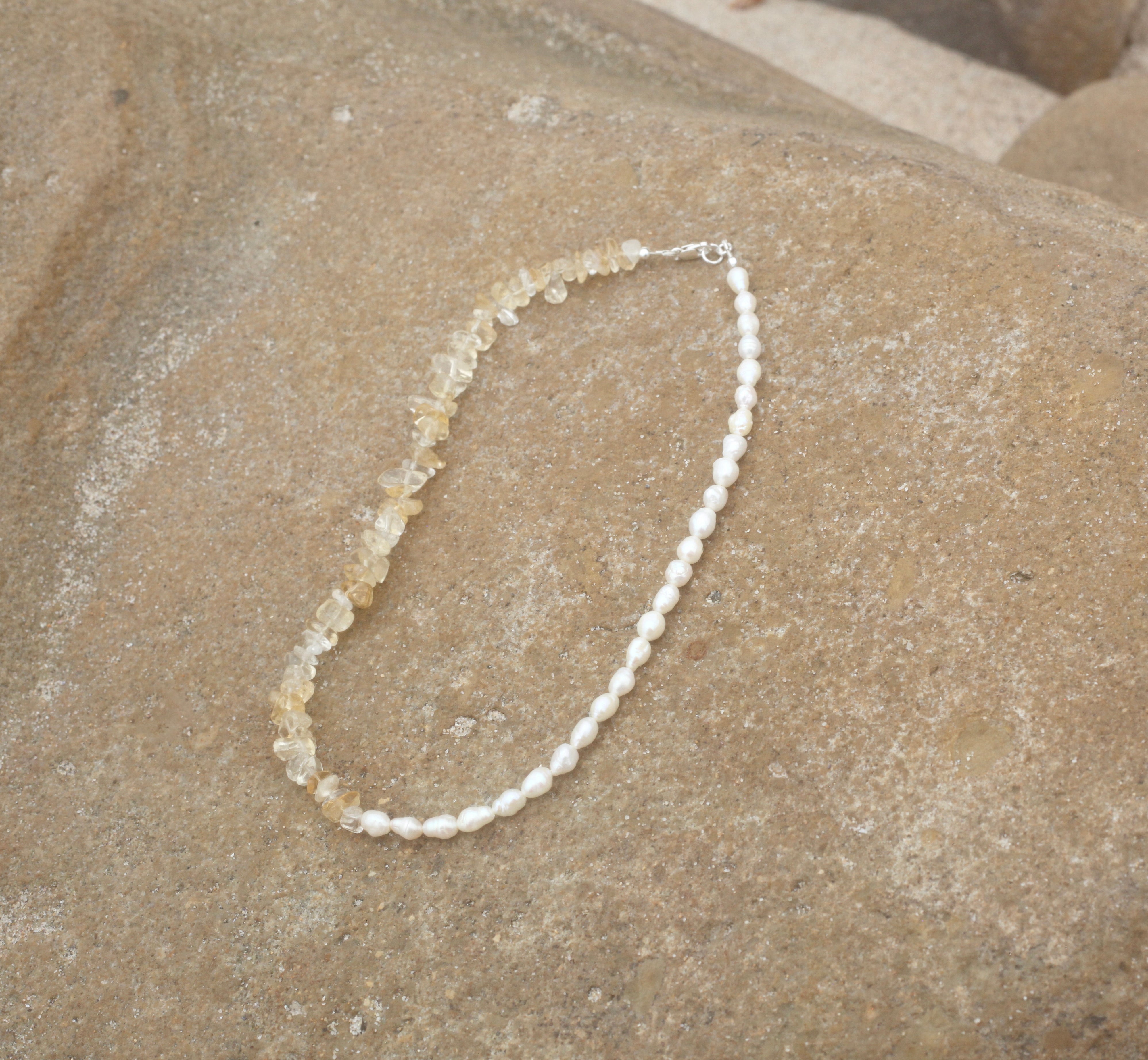 Genuine citrine gemstones, 60's vintage biwa pearls.