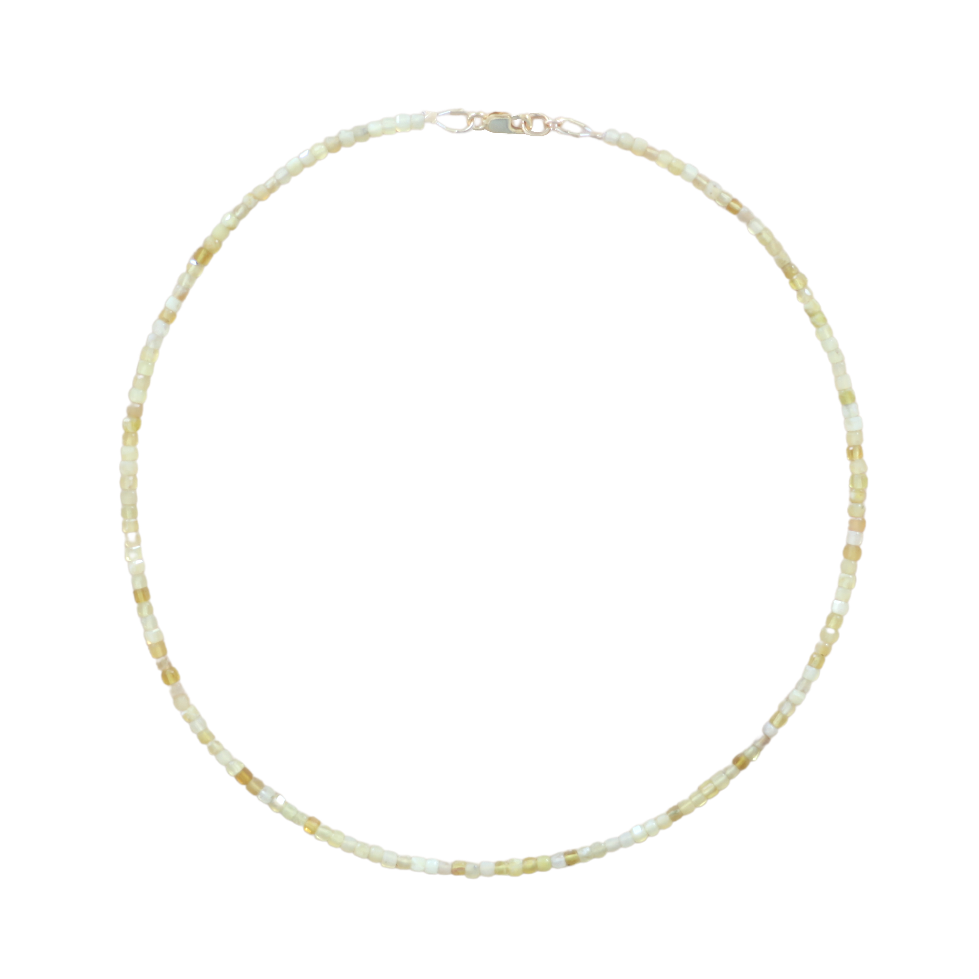 Shimmery, smoky, iridescent natural yellow opals are the star in this necklace.