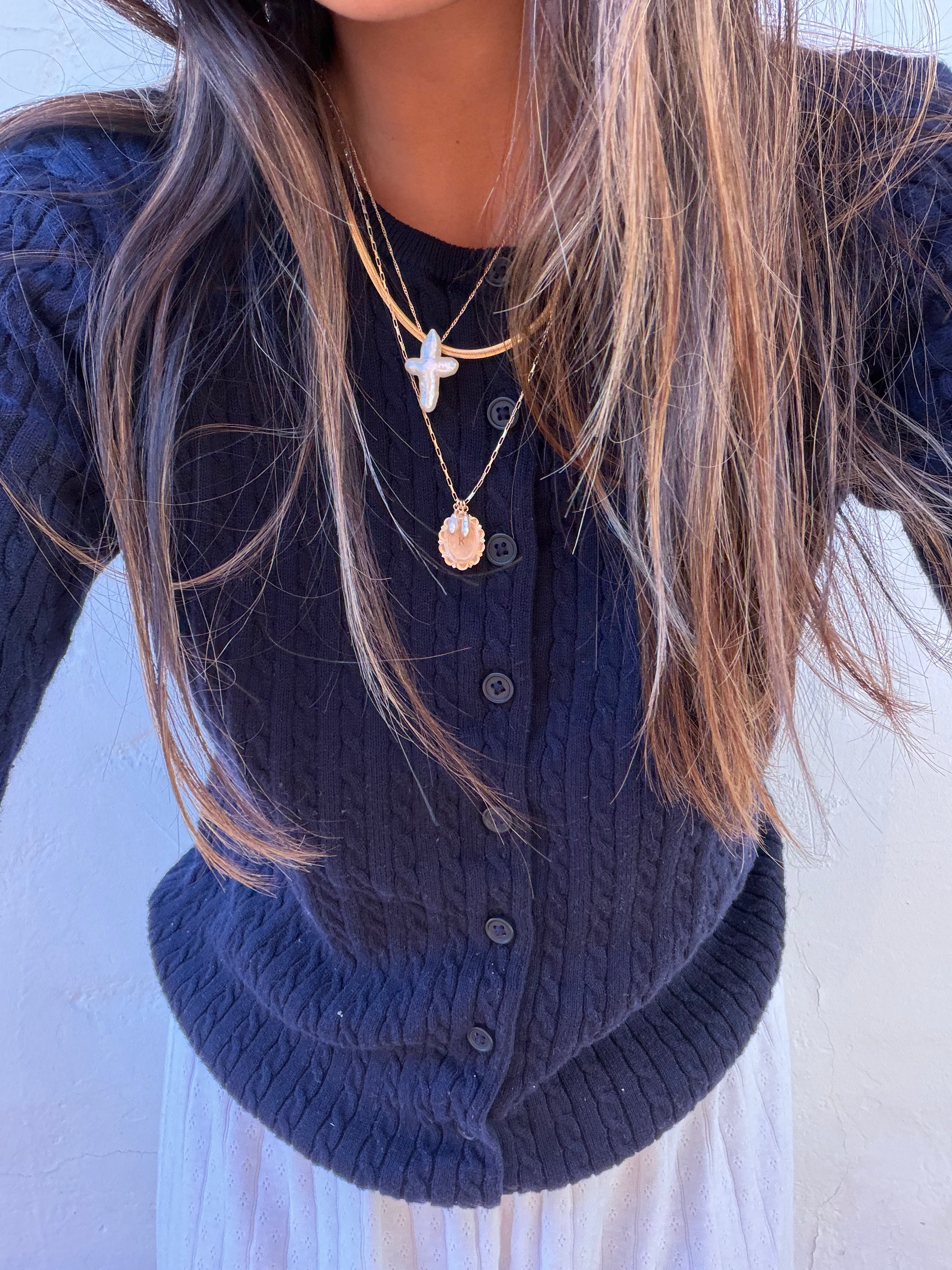 Our Pearl Cross necklace reworked with our best-selling diamond-cut cable chain.