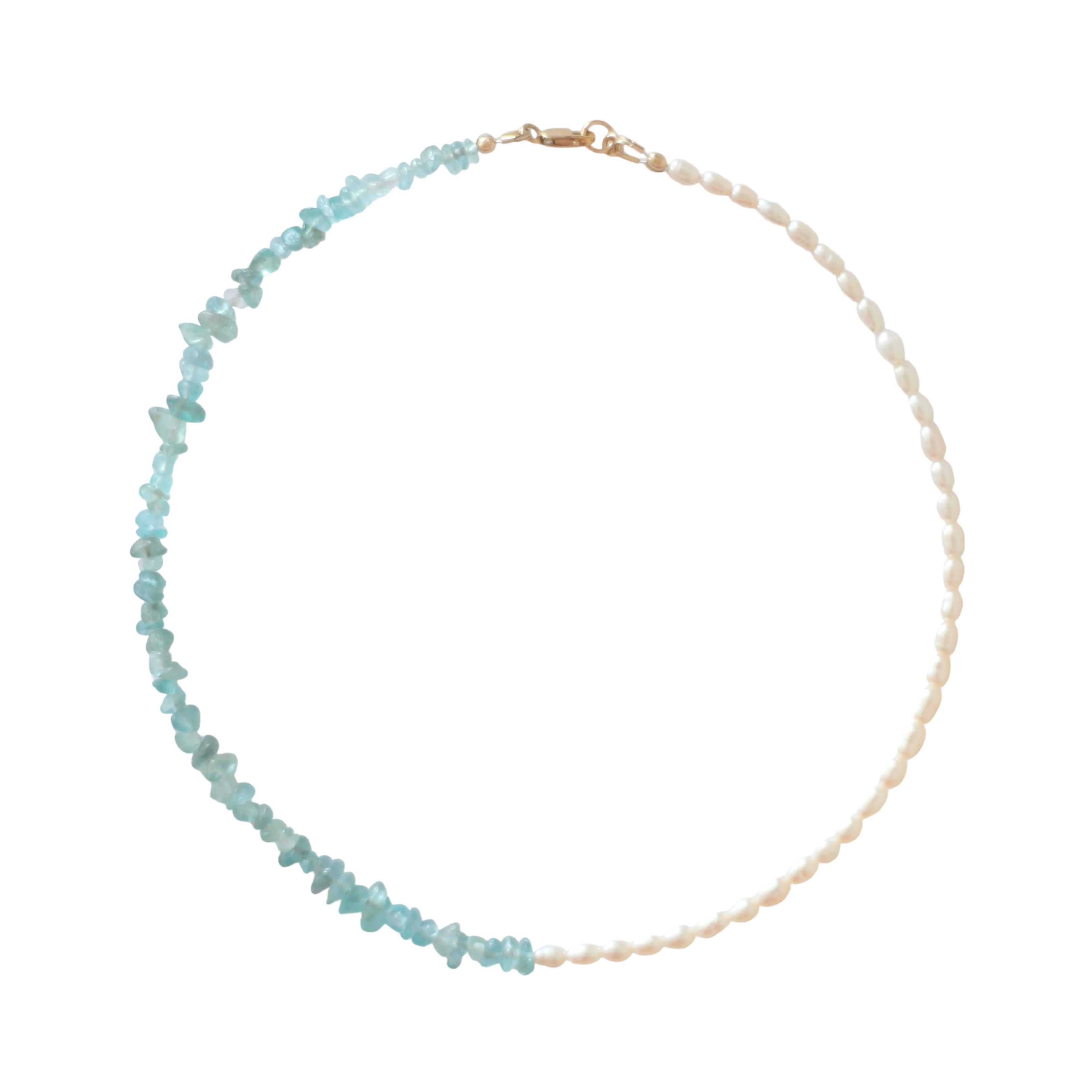 This necklace symbolizes the color of the ocean and the calm that the color blue bring us. Apatite is the star in this necklace. The healing gemstone known to awaken your innerself, give birth to ideas that can inspire, and helps clear away confusion and negativity to the wearer. Layer with your favorite golden chain or let it stand beautifully alone.