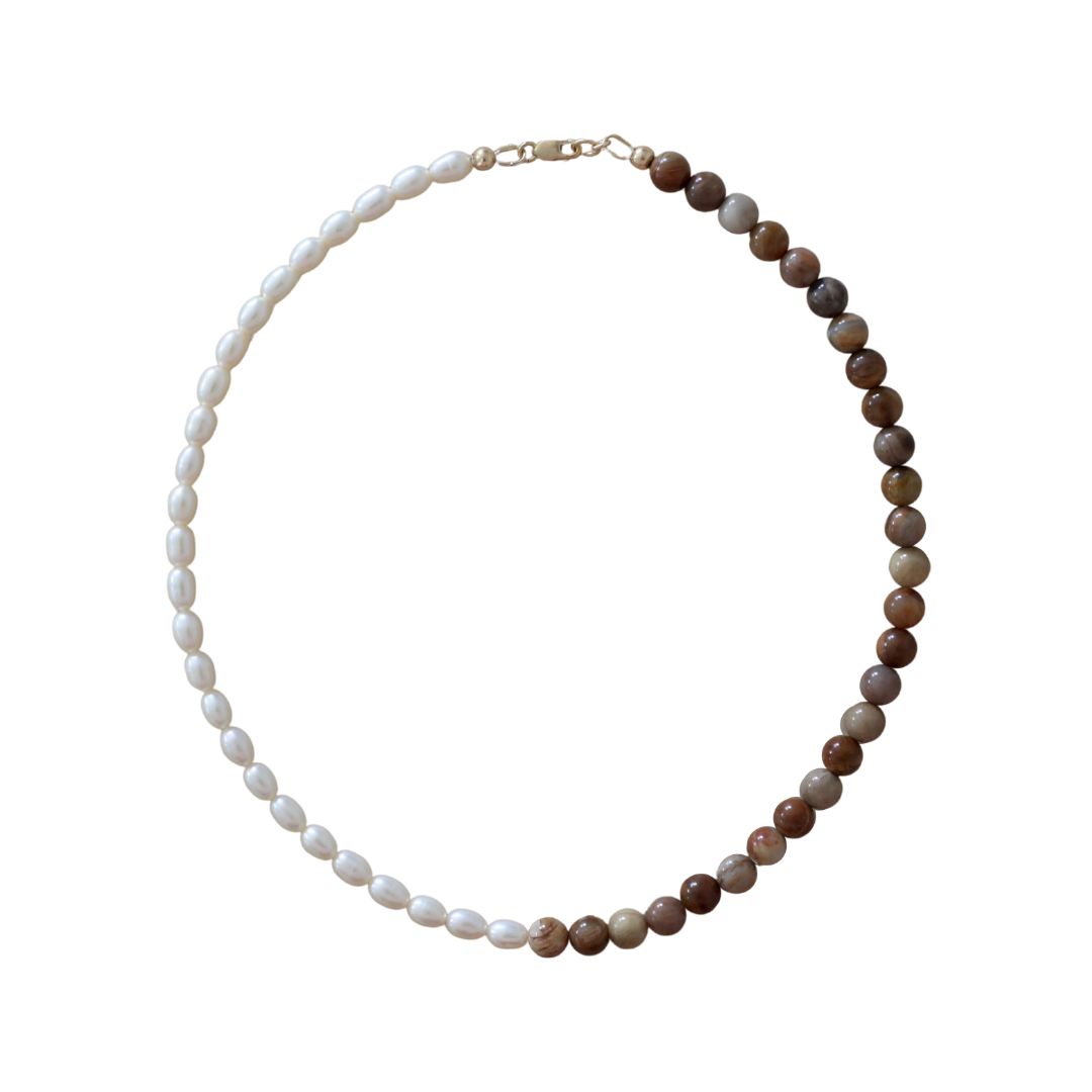 Freshwater Pearls, Petrified Wood Beads, .925 sterling silver or 14k gold-filled.